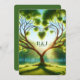 Send a memorable green wedding invitation! This is a nature wedding invitation that features beautiful trees with a majestic tree in the centre along with green and heart accents. Customise the front with the couple's monograms and wedding date. The back has space for your details and is solid green with light green font. A captivating tree wedding invitation that will delight those on your guest list. Use the template to customise the front and back. Use the template to create your own custom green wedding invitation.