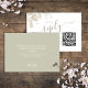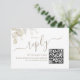 Make responding effortless with this wedding RSVP card, designed for couples who love an elegant, simple response style. Featuring minimalist calligraphy script and classic typography, this card blends timeless charm with modern convenience. The QR code reply card allows guests to RSVP easily through your modern wedding website. Accented with watercolor greenery leaves and stylish foliage leaves, it adds a natural touch. Complete with a personalised bride and groom monogram, it’s a sophisticated, simplistic choice for your big day.