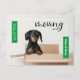 Let all your friends know about your move and your new address with this adorable dachshund dog moving announcement. He certainly looks like he's ready to get to the new house!! Customise the text with your names, date of move, message and new address. Available in red, green, blue, purple, grey and gold. Also available as a flat card.