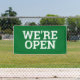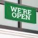 Let the World Know Your Business is Now Open! Capture attention with our eye catching 'We're Open' banner sign. Tailor a unique message using customisable text. Adjust colours in the design to align with your brand's identity.