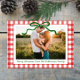 This is a Green Whimsical Bow Red Gingham Print Picture Christmas Holiday Card!