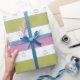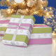Green, white and pink stripe with ornaments Wrapping Paper great for Christmas gifts.
