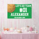 Cheer on your team with this Green White Baseball Team Banner. Personalise with your athlete's number and name, and the name of the team. You can even change the message. Show off your team spirit this summer.