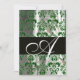 GREEN WHITE BLACK SILK DAMASK MONOGRAM GOLD INVITATION