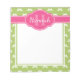 Stylish, trendy lime green and white ribbon bow pattern in the background, topped with a hot pink label featuring a customisable name and monogram template.