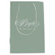 Green White Bride Elegant Script Typography Medium Gift Bag