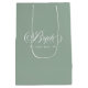 White and sage green Bride elegant script calligraphy gift bag.