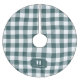 Add a rustic touch to your holiday decor with our green and white Christmas tree skirt. Design features a buffalo plaid pattern in white and festive jasper green, with your single initial monogram and family name.
