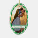 A traditional green and white candy cane stripe pattern makes a pretty frame for your photograph on the front of this oval Christmas ornament. Across your photo at the bottom is a white banner with your custom text in matching green. The back of the ornament has the same frame, with more custom text fields for your own message. * Please note - the candy cane frame is printed, and is not a raised edge frame; just artistically made to look like it is!