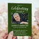 Invite friends and family to share their favourite stories and memories with this elegant white on green celebration of life invitation. Also available in horizontal orientation.