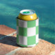 Green White Chequerboard Classic Retro Checks Can Cooler