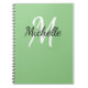 Green & White Custom Monogram Cute Notebook