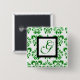 GREEN WHITE DAMASK BLACK SQUARE MONOGRAM 15 CM SQUARE BADGE