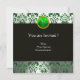 GREEN WHITE DAMASK ,SHAMROCK MONOGRAM,Black Invitation