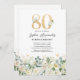 Green & White Floral 80th Birthday Party Invitation