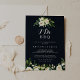 This green white floral blue "I Do" BBQ engagement party invitation is perfect for a rustic engagement party, rehearsal dinner, couples shower, after party or any wedding event in a dark blue background. The design features elegant watercolor white peonies with green foliage.