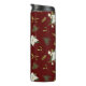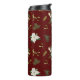 Green White Floral Pattern on Maroon Thermal Tumbler