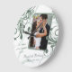 Change the photo and the text to personalise this sage green and white abstract floral photo template wedding, engagement, or anniversary wall clock. An elegant floral design.