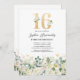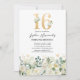 Green & White Floral Sweet Sixteen Birthday Party Invitation