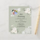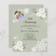 For an elegant and romantic 25th wedding anniversary. A sage green background decorated with white florals, roses and white lace. Personalise and add your photo, names and details.