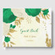 Romantic emerald green & white flowers with gold leaves botanical wedding guest book