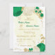 Romantic emerald green & white flowers with gold leaves botanical wedding invitation