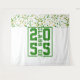 Create lasting memories with a camera and your Class of ____ Sport Typography Tapestry! White background, green typography, customisable year, and faux green and gold confetti header at top.