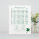 This fun personalised forest green, white, and gold lucky 4 leaf clover "Search for Love" word search game paper matches the Celtic, or St. Patrick's Day wedding invitation below. You can roll it up and tie it off with a green or gold ribbon, attach a short little pencil and set them out at your wedding reception or bridal shower for your guests to pass the time while they wait for all the festivities to happen. It is on basic paper, but you can choose other types. If you require any changes, please email niteowlstudio@gmail.com.