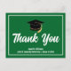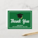 This modern green and white custom graduation thank you card features classy handwritten thanks above your high school or college name for the class of 2025. Customise with your name under the black grad cap for great personalised graduate thank you cards.