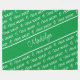 This soccer themed fleece blanket for girls features the text, "I love soccer" in a casual handwritten-style font along with heart shapes in white patterned diagonally on a green background - personalise with her name on a chunky full-width angled colour strip - background, angled colour strip, and personalised text colour can be changed to ANY colour--choose a background colour that contrasts with the white text pattern  - katz_d_zynes