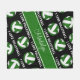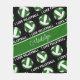 This cute volleyball themed fleece blanket for her volleyball room features the realistic image of a volleyball that has green and white panels patterned at an angle with the sporty font text phrase "I love volleyball" in white that stretches between the angled rows of volleyballs - the volleyballs' green panels are blended with a girly kaleidoscopic pattern for a textured appearance - personalise her name in a sophisticated handwritten font on an angled chunky full width green colour strip - background is customisable black - by katz_d_zynes