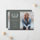 A formal but modern graduation photo announcement to celebrate those obtaining a Juris Doctor degree. Featuring a full-bleed photo with a colour overlay and law scales (with the 'JD' abbreviation) surrounded by a laurel wreath in white. The template text for the graduate’s details is completely customisable, so the font size, style, colour and placement can be changed. The back features a solid coloured background and template text for a longer message. If you would prefer to include no text on the back, just delete it before ordering. If you would prefer a photo on the back of the card, delete both the coloured background and the template text and upload your own photo. The design is available in other colours in my store.
