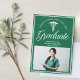 This green custom medical school graduation announcement for a nurse or doctor features classy white typography under a medical caduceus and your college name for the class of 2025. Customise with your graduating year under the elegant calligraphy for a great personalised university graduate card.