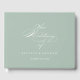This green white modern calligraphy wedding guest book is perfect for a rustic wedding. The simple and stylish design features classic and fancy script typography in a green background.