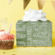 Simple holiday gift wrap. Peace, love, Christmas, joy and noel holiday words in green and white typography on a textured background.