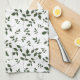 Green white pattern leaves monogram tea towel