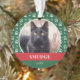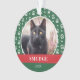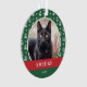 Pet ornament for Christmas with your pet's photo inside a green frame with a paw print pattern. Add your pet's name and the year.