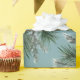 An elegant and sophisticated holiday wrapping paper featuring white pine mixed with silver spruce tree branch garlands on the diagonal against a lively wintery blue spruce colour background.
