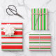 Green, White, Red Christmas Themed Lined Patterns Wrapping Paper Sheet
