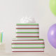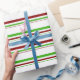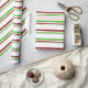 This Christmas inspired design features a green, white, and red coloured striped pattern. Wrapping paper like this might be fun to use when preparing gifts or presents being given in celebration of a birthday, a wedding, an anniversary, or some other event.