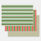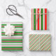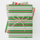 These festive, fun Christmas themed designs feature stripes coloured red, white, and green. Wrapping paper sheets like these might be fun to use when preparing gifts being given when celebrating Christmas.