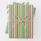 Green, White, Red Coloured Christmas Style Stripes Wrapping Paper Sheet