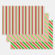 These fun, festive Christmas and holidays themed designs feature green, white, and red coloured stripes patterns. Festive wrapping paper sheets like these might be fun to use when wrapping presents or gifts being given to celebrate Christmas.
