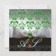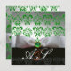 GREEN WHITE RIBBON & BLACK DAMASK MONOGRAM Gold Invitation