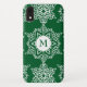 This Christmas phone case features a pretty white snowflake pattern design with monogram on a green background. Personalise it with an initial.