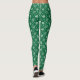 Green and white snowflakes adorn these holiday Christmas winter leggings