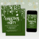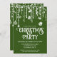 Green and white string lights Christmas party invitation with a cute whimsical fun for a festive holiday party.