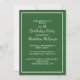 Invite friends and family to celebrate in style with this timeless green and white birthday party invitation. Featuring a rich forest green background, clean white borders, and classic typography in a mix of serif and script fonts, this design brings effortless elegance to any milestone event. The back of the card adds a touch of fun with coordinating green and white stripes. Perfect for adult birthdays, retirement parties, or upscale celebrations.