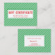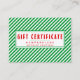 NewParkLane - Business gift certificate, with a fun patern of green and white diagonal stripes, and a whimsical winter font in red. All text styles, colours, and sizes can be modified to fit your needs.