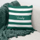 A stylish and unique minimalist green and white bold striped pattern throw pillow with a customisable white name monogram printed in the centre. Easily personalise it with your name or monogram by changing the template name in the template field.